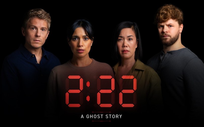 Written by Danny Robins, 2:22 has a very small cast featuring only four principles and two supporting cast members. All of the action takes place on the same set, a living room/ dining room open plan downstairs of a house, the events take place over the period of one evening. I don’t want to give too much away, because I really don’t want to spoil anything; But I can say that the cast members were each excellent in their roles, the scenery spared no detail and the sound, lights and effects were second to none.