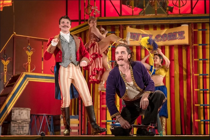 And Eddie Mann is the show’s stand out as the relentless Detective Fix, determined to pursue and arrest Fogg, convinced he is a bank robber being sought by the police. His additional musicianship, a wonderful routine on a seesaw with Wilson Benedito’s charming Passepartout, and audience ad-libs are a recurring highlight.