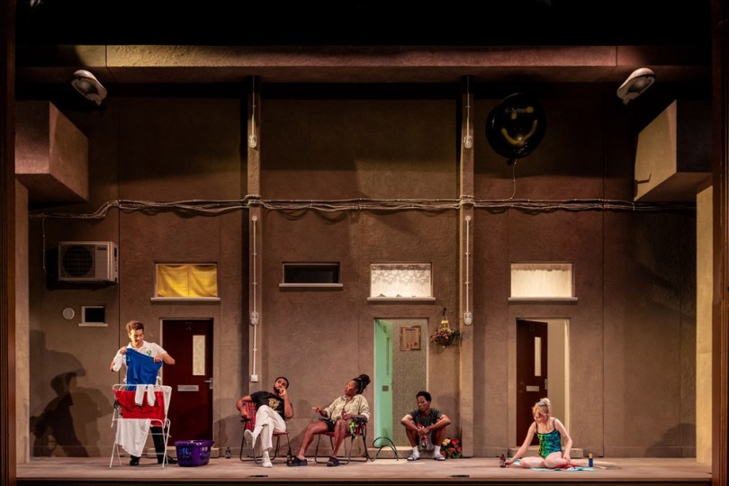 Marks brings a vulnerability to a tough cookie who worked every hour to make sure her beloved son has a chance to leave the estate, and Trieve Blackwood-Cambridge is great fun as well-meaning, but naïve, posho Tony struggling to make sense of a very different world to his normal milieu.  Scarlett Rayner as Leah is comedy gold belting out Mama’s hits, but does get to the core of a damaged young woman who knows her prospects are bleak, yet remains a steadfast friend to the boys.
