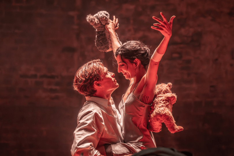 The most striking thing about director Atri Banerjee’s production is the dispensing of a realistic set, which was one of the hallmarks of the original production and presenting it on a bare circular stage with an outer ring revolve and an inner ring lift. The lift was used for raising the few pieces of set furniture that were needed, a table and the infamous ironing board. All other props were simply placed on a low wall at the back of the revolve. This was an excellent choice. It prevented the play having a dated feel and it focused the action on the excellent cast and the brilliantly written script. The staging did have some idiosyncrasies: having the almost reconciled pair disappear down the central lift at the end was theatricality taken rather too far, and I failed to understand the symbolism of the falling rain effect during the last scene.