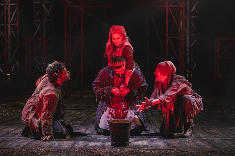For a small cast the energy was at a high, the first battle was extremely upbeat and the decision to endure the war with a modern tune in the background was really enticing and fresh. The three witches were an influential trio, and their narration inspired the whole story, their performance was gripping from their body language to their speech, every word sent a shiver down my spine and demonstrated the thrilling feel Macbeth is all about. As soon as Macbeth’s voice echoed across the room my ears perked up, Ash Hunter was both sinister and sensational, his aura had the audience in suspense. Although we know the story Ash’s performance has enhanced everything we knew about Macbeth and taken his character to a whole new level.