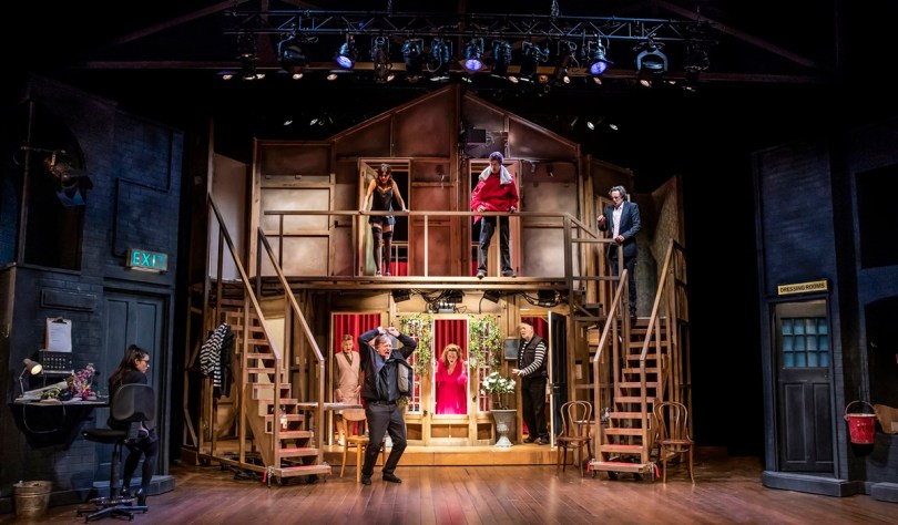 If Act 1 was amusing, Act 2 raised the bar with its physical comedy in ‘the backstage’ scene, well-choreographed, you would have to see it to believe it. By Act 3, when the whole thing is falling apart, the auditorium shook with belly laughs and giggles. Here the timing was immaculate – particularly that of Lejuene, who was played on this occasion by understudy Mark Middleton. Middleton is the company fight captain, so we’d expect his movement to be excellent. His physicality and body language were superb. The falling down the stairs so masterful, it got an applause.