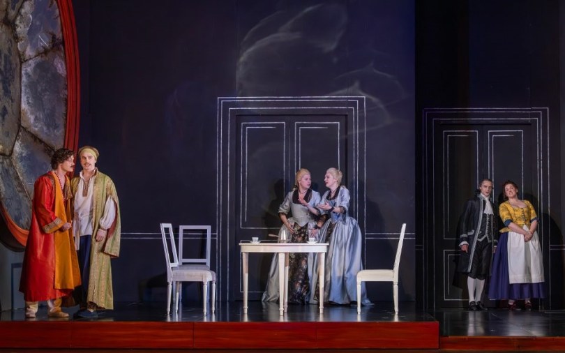 Whilst Mozart had imagined a coffee house, lounge, garden, and bedroom, Tobias Hoheisel’s set design was simple and all the more effective for it as it allowed performances to come to the fore without unnecessary distractions and his costume design allowed us to easily differentiate between the various comic disguises.