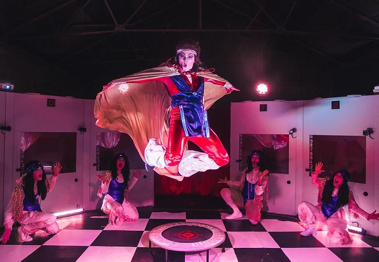 This is immersive theatre taken to a new extreme and whilst it seems initially distasteful in its voyeurism, it is curiously addictive at the same time. As our artificial host, A.I.M.E.E, gets us settled before Sarge (Duncan Cameron) appears to introduce us to tonight’s contestants (Carmen Arquelladas, Leebo Luby, Miwa Nagai, and Simone Tani) and then the games begin, dark and comedic in equal measure.