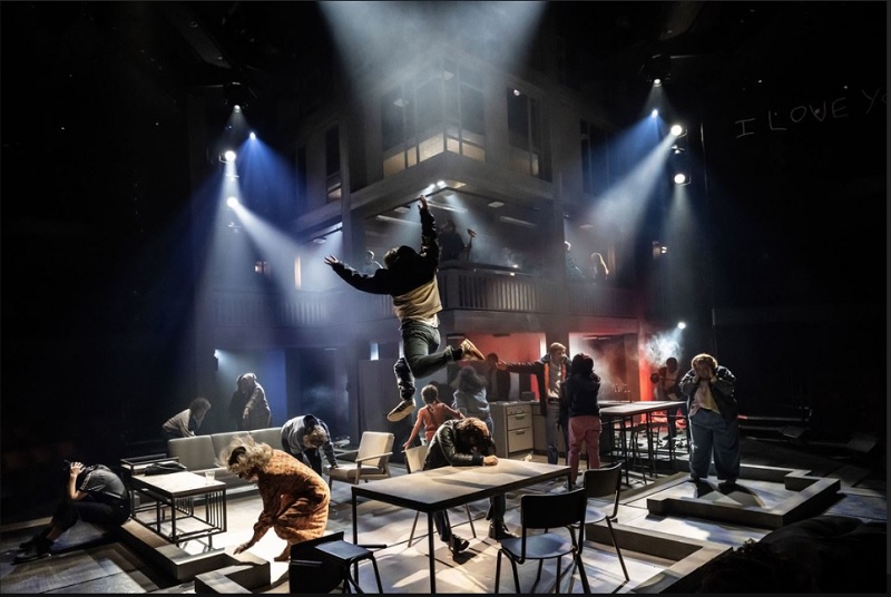 Where to begin. Upon entering the theatre you’re met with an ominous set of a building standing as tall as it can be, with the famous artwork of the “I Love You Will U Marry Me” sign, bringing you straight into the location of the show: Sheffield Park Hill. The musical follows three individual families living under the same roof throughout various timelines, telling the story of the occupants in the flat and covering family troubles and dilemmas.