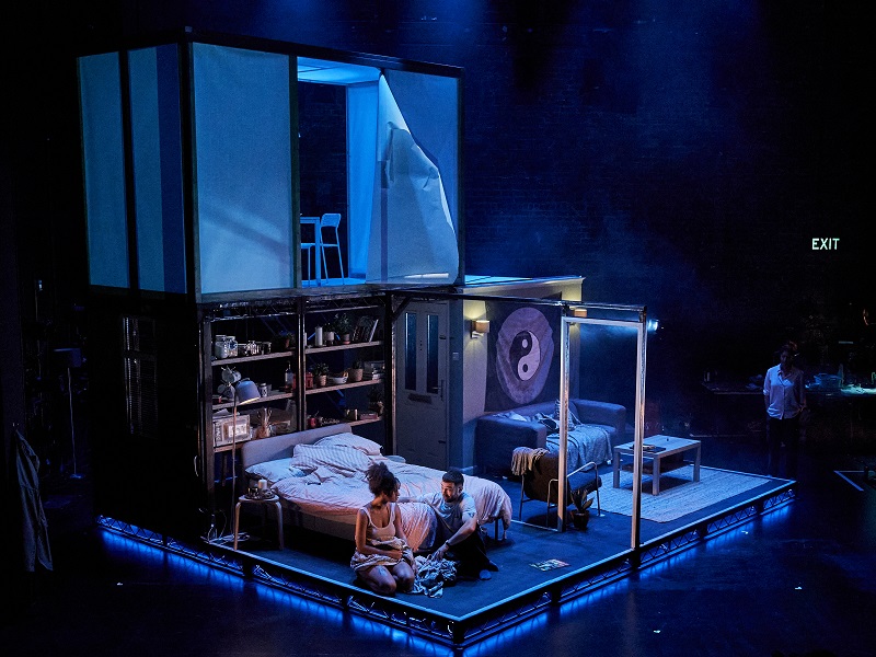The set, like Kirkwood’s writing and Lucy Morrison’s production, is clever, fluid and dynamic. The crew have the task of manually revolving the set and dealing with props and there’s really smart, integrated use of CCTV, social media posts and voice-overs.  Jake Davies and Siena Kelly are terrific as Noah and Celeste, totally believable in their relationship and their descent into madness/rapture.  The only disconnect comes in an occasional jarring tone between the rom-com jokes and the serious issues.