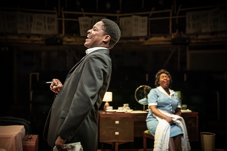 The difficulty Hall had with this play in the US, centres around her portrayal of Dr King; rather than the hagiographic figure of grainy newsreel footage, we see King as a fully rounded human being with all the faults and foibles that entails. He smokes constantly, is unfaithful to his wife and displays a vanity and preening arrogance, true characteristics which are rarely discussed, and do not sit well in the American psyche. Dr King (Adetomiwa Edun) is holed up in a Memphis Motel room during a thunderstorm, he calls for coffee, and the maid Camae (Ntombizodwa Ndlovu) delivers it, along with insights and information that will change the course of history. Camae is an astonishing character, foul mouthed and sassy, she displays no reverence to King, Ndlovu investing her with the ability to be crude yet sympathetic in an extraordinary performance by this recent graduate from the Manchester School of Theatre. She is matched by Edun who by turns is inspirational, angry, reflective and finally resigned to his fate as King, a real human being, deified in his own lifetime and struggling with the burdens that such veneration brings.