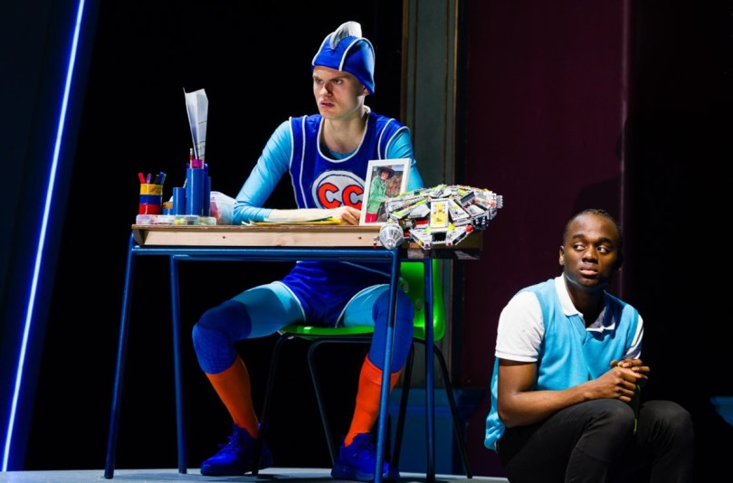 Willis’ script is splattered with words of all hues (many shared between teachers and pupils) and the target audience was occasionally aghast to hear them. The laughter they induce is perhaps relied a little too often. Where the script really flies is its ersatz-poetry and semi-rapping prose which sends the play onto a different plain. It is earthy and dirty but also blissfully poetic – the impact of which is doubled by having the words literally spelled out before us. Clearly this will end up as a studied text on curriculum and perhaps even performed in a bowdlerised version in schools. It makes you wonder, boy…
