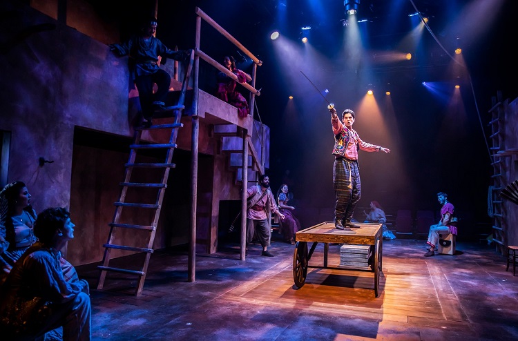 Directed by Christian Durham, ‘Zorro The Musical’ is vibrant and energetic, effectively recreating the hot bustling streets of 1800s Los Angeles and filling the stage with life and character. The show is performed once again in the traverse staging layout now favoured by the Charing Cross Theatre, and it suits the piece really well, perhaps the most successful of the recent productions here in this regard. The cast use every inch of the relatively small performance space, transitions are slick and the choreography is stunning when viewed at such closeness. The swordfight scenes are equally impressively, not holding back in terms of ferocity, and the front rows on either side may feel like ducking at times. The audience really does feel part of the action and the story, and it’s a fantastic achievement by all of the creatives involved.